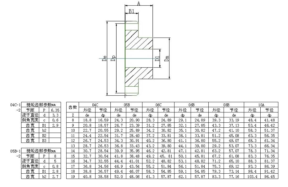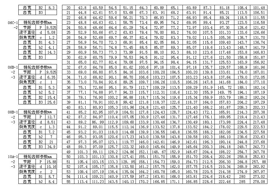 注:p 鏈條節(jié)距 z 鏈輪齒數(shù) d1 鏈條滾子直徑